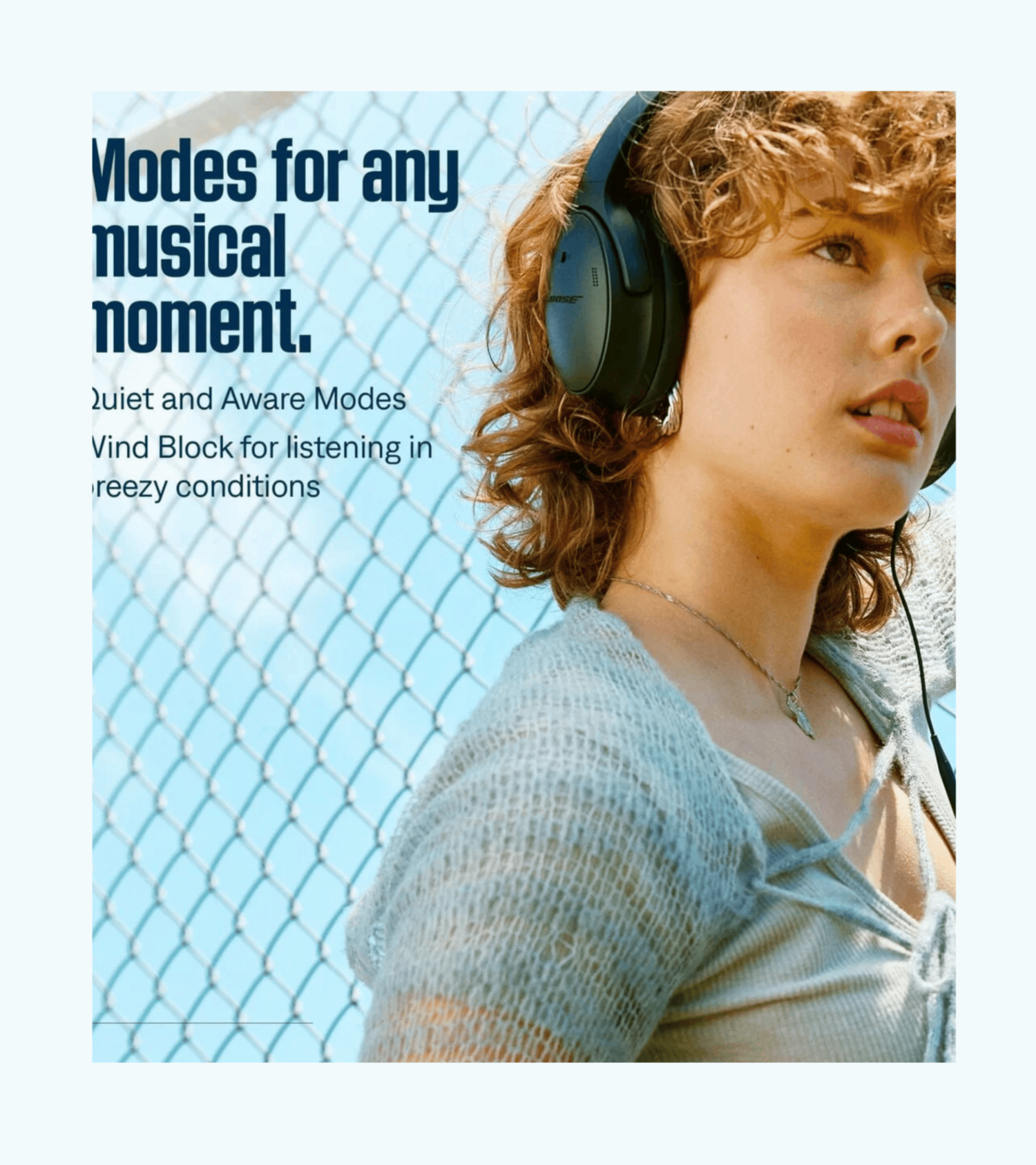 Versatile Modes: Choose between Quiet and Aware Modes for full noise cancellation or environmental awareness, or create custom modes with adjustable noise cancellation and Wind Block.