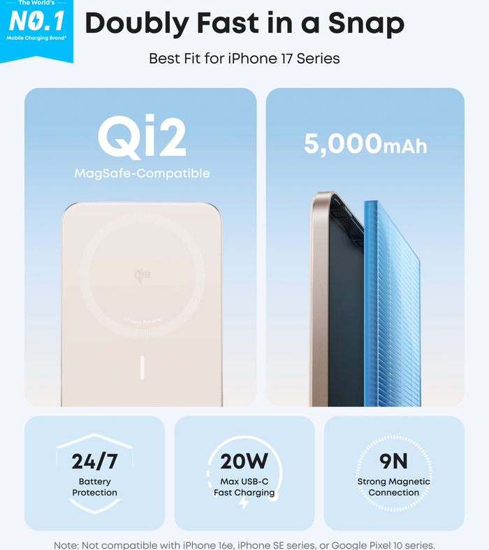 Capable of 20W bi-directional fast charging, the power bank recharges in under two hours and can quickly boost an iPhone 16 Pro to 25% in just 42 minutes, ideal for any urgent situations.