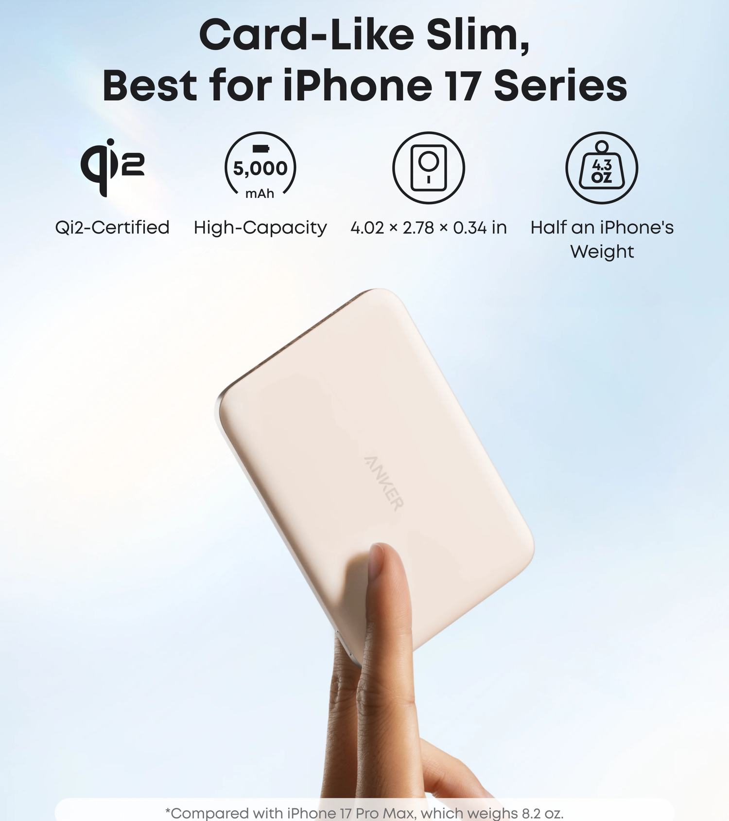 Weighing only 4.3 oz—half as much as an iPhone 16 Pro Max—Anker Nano Power Bank is ideally suited for easy portability, effortlessly fitting into wallets or pockets.