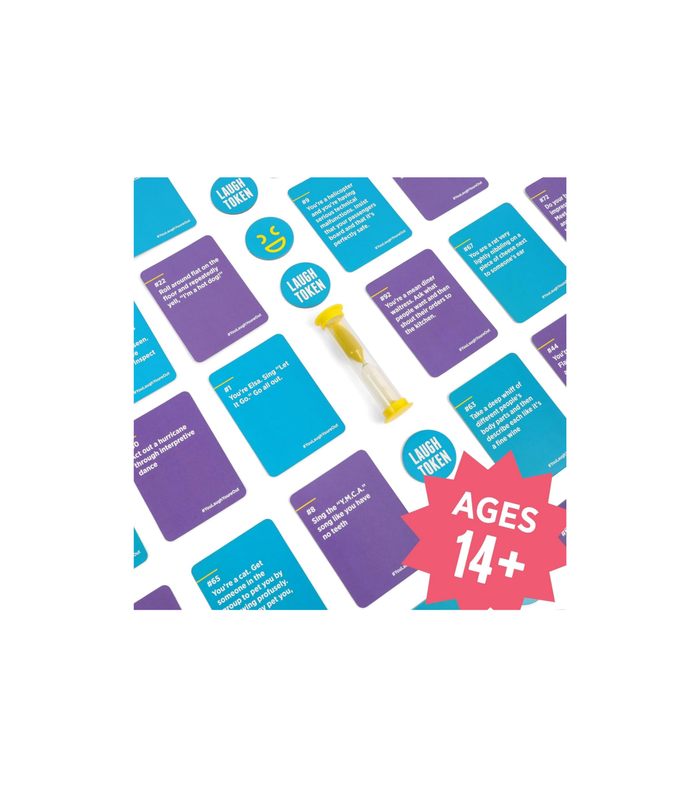 HOW TO PLAY: The funniest person goes first. They are the Joker. Jokers pick a card and have 30 seconds to make other players laugh by doing what the card says. If anyone laughs, they lose and must give up a laugh token to the Joker. When a player runs out of Laugh Tokens, the game ends. And the player with the most Laugh Tokens wins! Wanna play again?