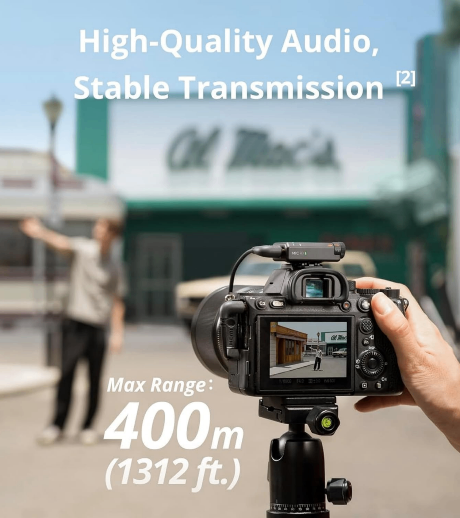 Detail-Rich Sound - Mic Mini wireless microphones delivers high-quality audio. A 400m max transmission range [2] ensures stable recording, even in bustling outdoor environments like a busy street. 48kHz sampling & 120 dB SPL for full, clear sound, 48h battery life with charging case [3].