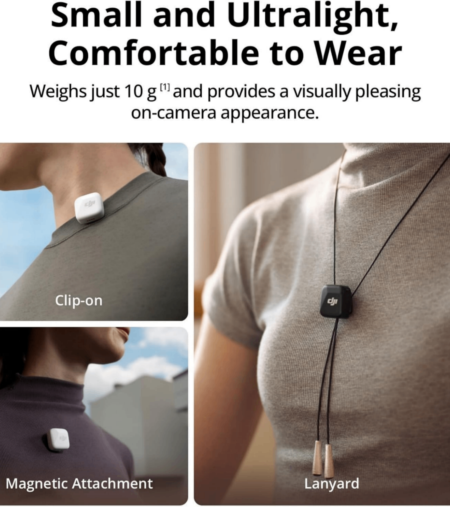 Small but Mighty - The DJI Mic Mini lavalier microphone transmitter is small and ultralight, weighing only 10 g, [1] making it comfortable to wear, discreet, and aesthetically pleasing on-camera.