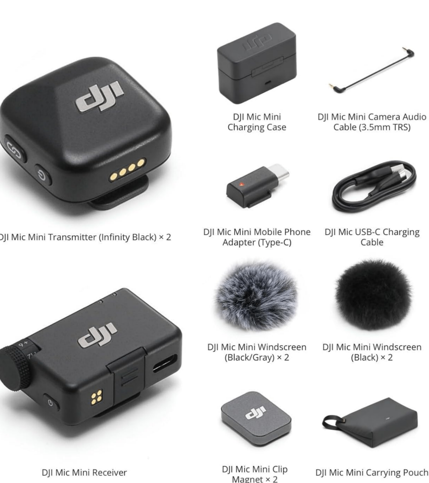 Includes two DJI Mic Mini TX, one RX, a charging case, and other accessories, making it optimized for a wide range of extended scenarios like interviews, livestreaming, content creation, and more.
